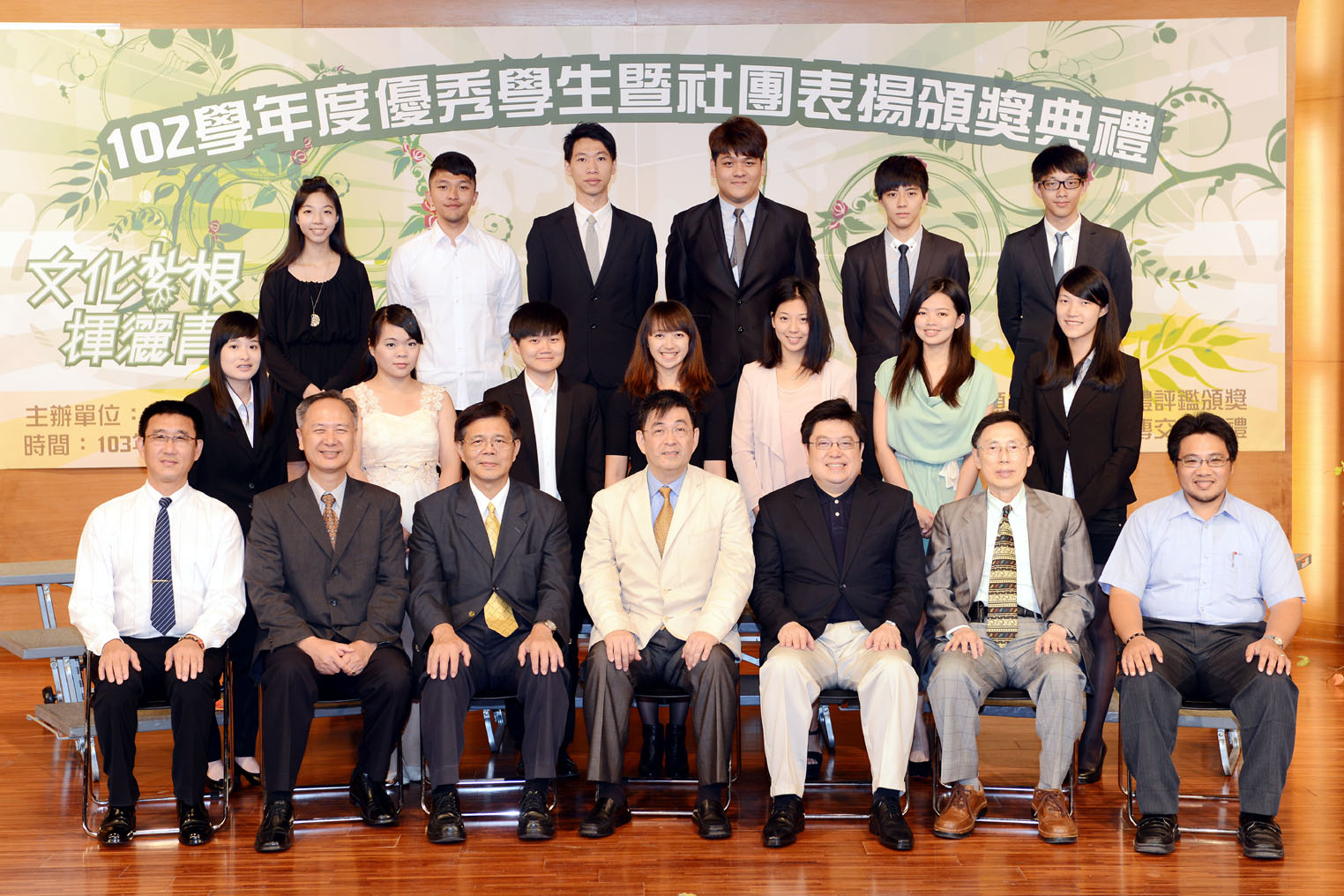 本次頒獎活動有幸邀請到救國團張德聰主任、丁文揚副處長、江孝平編審蒞校辦證,並與本校當選大專優秀青年學生合影留念。